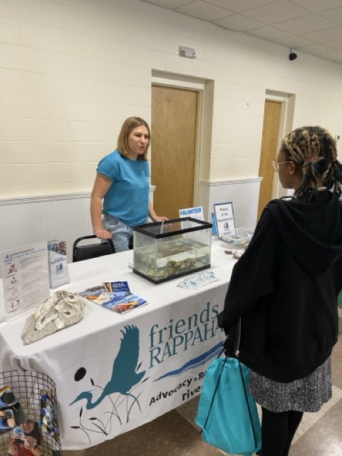 On March 4, 2025, Friends of the Rappahannock hosted the first-ever Marine Career Day in Tappahannock, Virginia, at the Tappahannock-Essex Volunteer Fire Department. The event was designed to open students’ eyes to the meaningful, local blue and green jobs available right here in their own watershed. Throughout the day, 11th- and 12th-grade students rotated through a bustling room full of professionals, from oyster farmers and conservationists to engineers, technicians, and outdoor recreation experts, each ready to share what they do and why it matters.